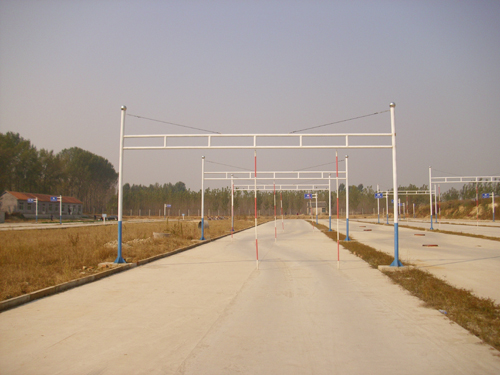 按照(91号)部令标准要求:对场地进行了扩建改造工程,已经建成的综合训练场硬化地面总面积为16000平方米,按照科目要求分设第一训练场和第二训练场。第一训练厂现已建成15个龙门吊桩,专供练桩使用。第二训练场已建成三条训练跑道,可供大小车同时训练,科目内容完全按照(91号)部令要求、设置了科目二、三必考科目和选考科目,专供基础训练、道路驾驶训练、科目训练和夜间训练使用。是一个理想的驾驶员培训基地。