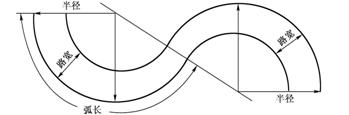 弯道外缘弧长取值大于等于1/3圆周。